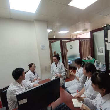 À l’issue d’un remplacement de plusieurs mois en région parisienne, je réalise mon souhait de me former auprès de maîtres chinois. Pour cela, je poursuis l’apprentissage de la langue chinoise pendant un an à Taïwan, puis effectue un internat d’une année en milieu sinophone à l’hôpital de médecine traditionnelle chinoise du Yunnan (Yunnan Sheng n°1) à Kunming en Chine. Cette immersion me permet de travailler directement aux côtés de médecins chinois en acupuncture, gynécologie, dermatologie, pédiatrie, gastro-entérologie, médecine interne...